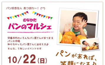 10月22日日曜日 ゆめタウン宗像にて「パンマルシェ」開催されます! 地域のパン好きがあつまり 「笑顔」と「楽しい会話がうまれる」そんなイベントが宗像で初めて開催されます。